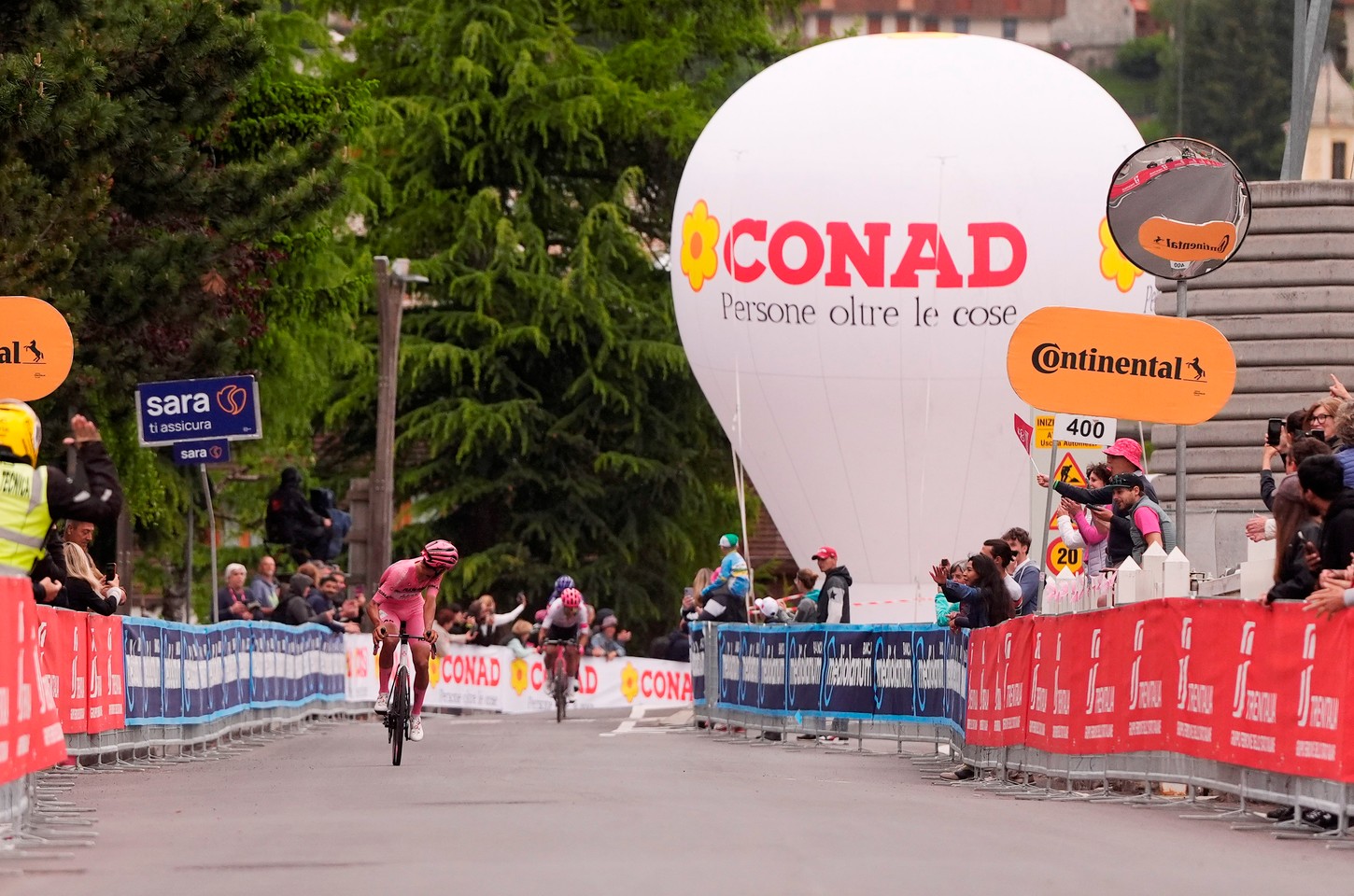 Εκεί, στο Giro του 2018, στην ανηφόρα του Φινέστρε, ο Σάιμον Γέιτς, ενώ φορούσε τη ροζ φανέλα και έδειχνε άτρωτος, είχε υποστεί ίσως τη μεγαλύτερη ήττα της καριέρας του, αφού στην επική επίθεση του Κρις Φρουμ, είχε χάσει 39 λεπτά κατρακυλώντας στη 18η θέση της γενικής. Στο ετάπ τώρα, μετά από αρκετά χιλιόμετρα μεγάλης μάχης, σχηματίστηκε ένα μεγάλο γκρουπ από 31 ποδηλάτες, που αποσπάστηκαν από το πελοτόν, ανάμεσά τους και ο αθλητής «κλειδί» για την Visma, Βάουτ Βαν Άερτ. Η διαφορά τους έφτασε μέχρι και τα δέκα λεπτά, παρά την προσπάθεια της EF να μειώσει αυτό το πλεονέκτημα.