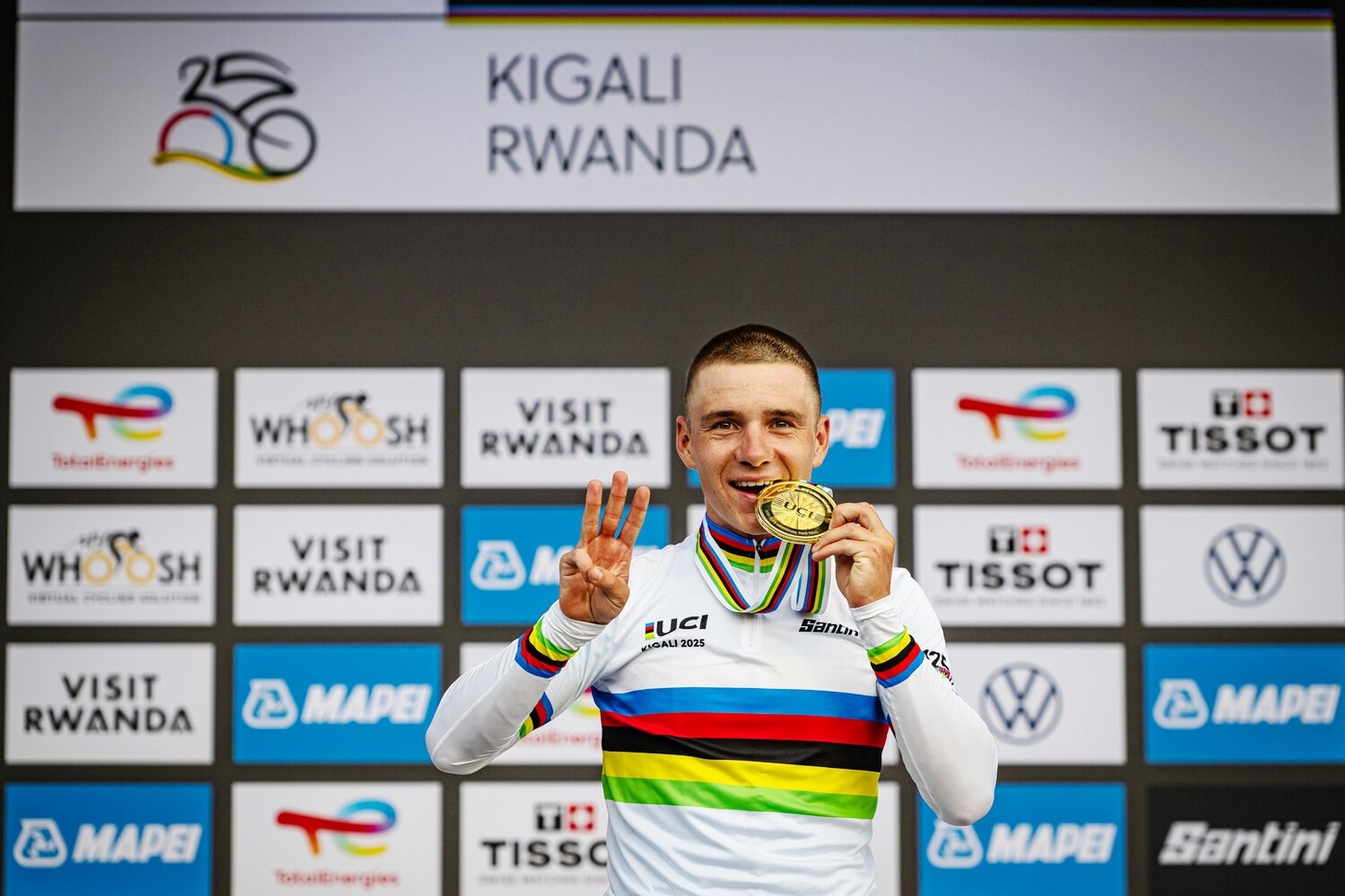 Ο Έβενπουλ, πραγματικός δυνάστης του ατομικού χρονομέτρου, έχει χρυσά σε Ολυμπιακούς, σε Παγκόσμια, σε Ευρωπαϊκό και φυσικά αμέτρητες νίκες σε τέτοια ετάπ και στους τρεις μεγάλους γύρους. Ο Βέλγος ήταν το μεγάλο φαβορί στο Κιγκάλι, αυτό όμως που δεν περίμενε κανείς, ήταν το γεγονός ότι προσπέρασε τον Ταντέι Πογκάτσαρ λίγο πριν τον τερματισμό (ο Σλοβένος είχε πάρει εκκίνηση δυόμισι λεπτά πριν τον Ρέμκο), ρίχνοντάς του τελικά 2 λεπτά και 38 δευτερόλεπτα. Ήταν – κατά την ταπεινή μου γνώμη – η πιο απρόσμενη ποδηλατική στιγμή σε ολόκληρο το 2025. Τελικά ο Πογκάτσαρ έμεινε εκτός βάθρου, παίρνοντας την 4η θέση, πίσω από τους Τζέι Βάιν (2ος) και Ίλαν Βαν Βίλντερ (3ος).